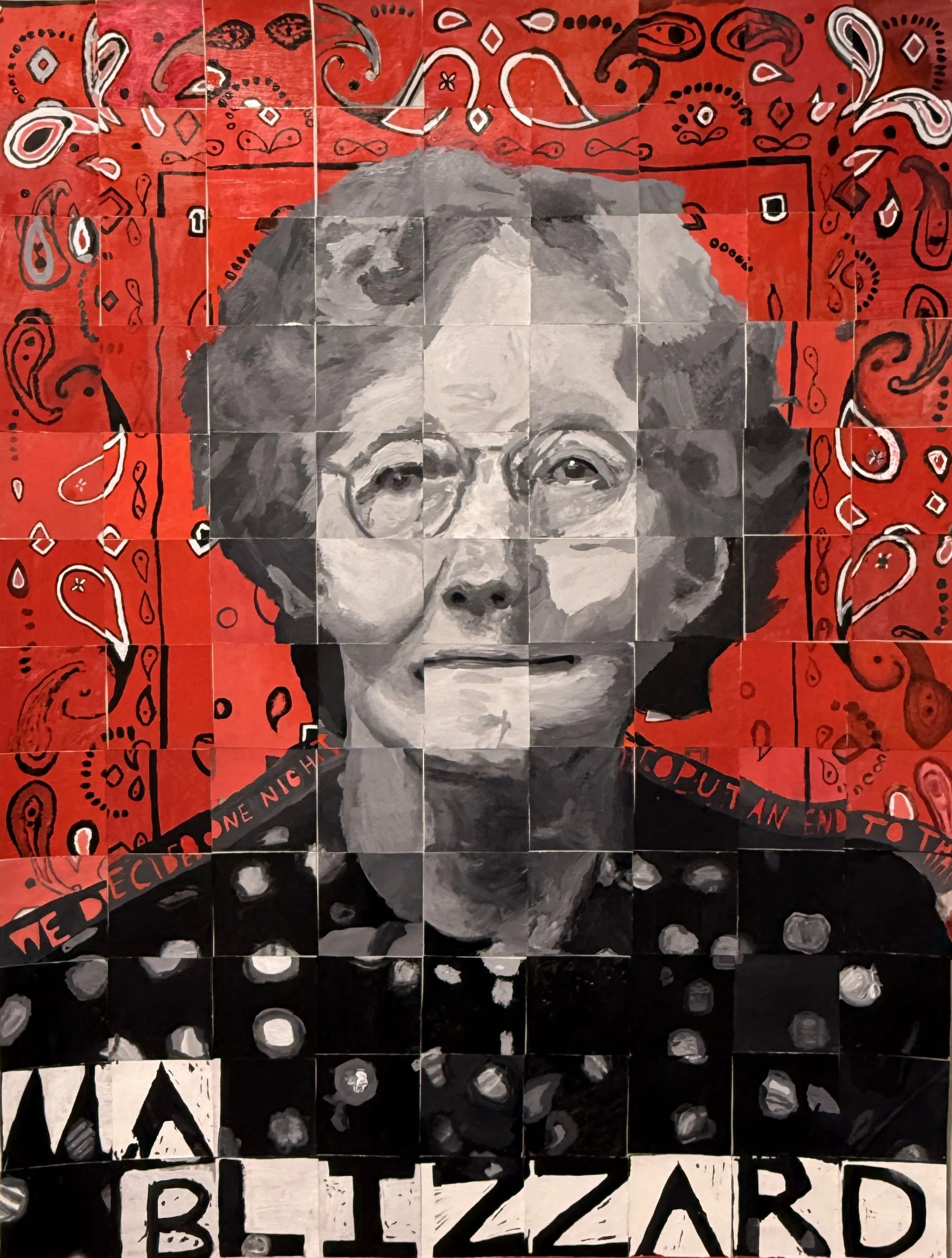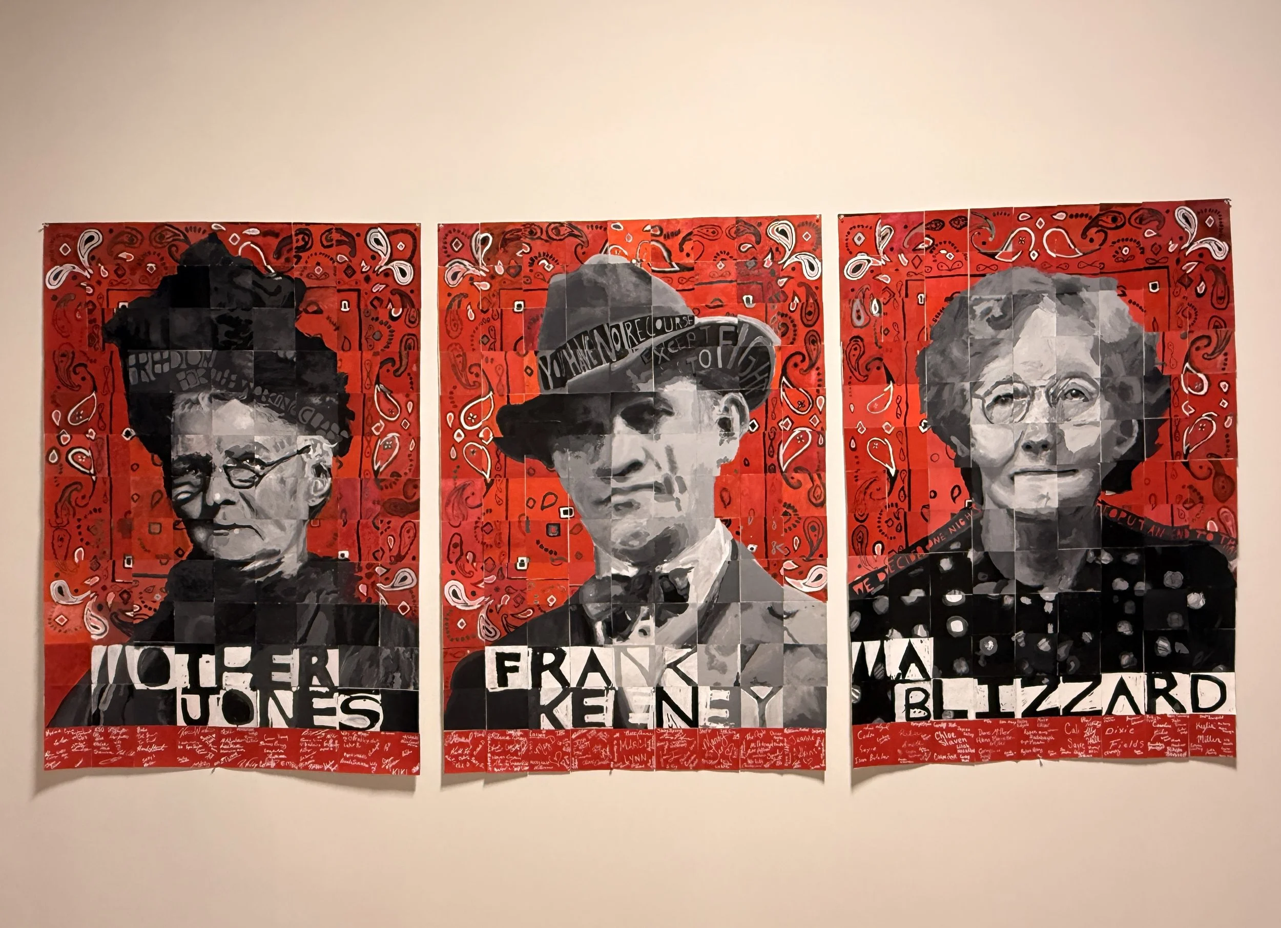 Portrait 3 is complete! This one was such a fun collaborative effort. Our Ma Blizzard portrait was completed in two field trips to the West Virginia Mine Wars Museum by two high schools, Ripley High and Tug Valley High, with students in Caitlin Trombley’s Appalachian Studies class at Marshall University finishing her up!